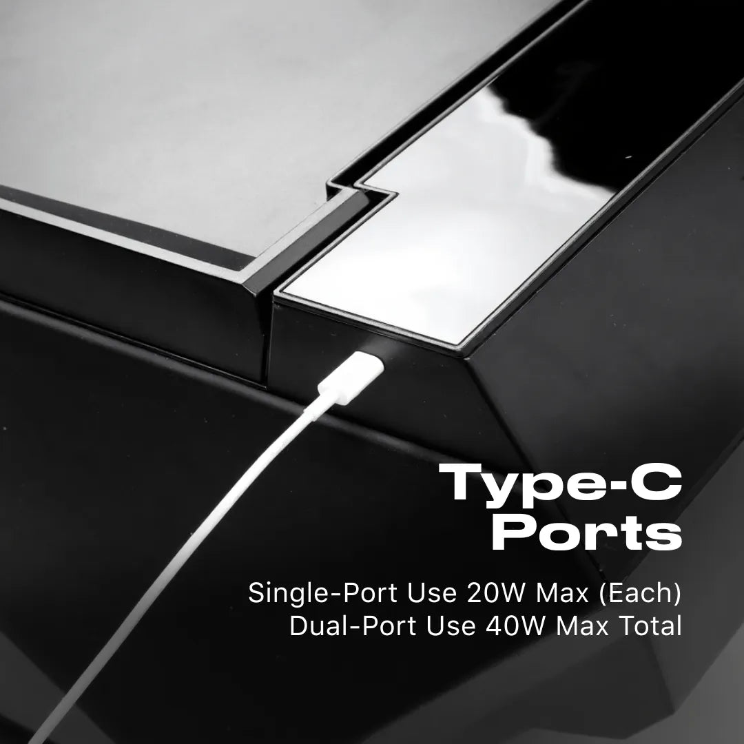 Materials: ABS, acrylic, leather • Color: Black • Capacity: 18L • Power Input: AC 100–240V / DC 12–24V • Cooling Power: 50W • Type-C Output: 20W ×1 / 40W ×2 • Installation: Center console